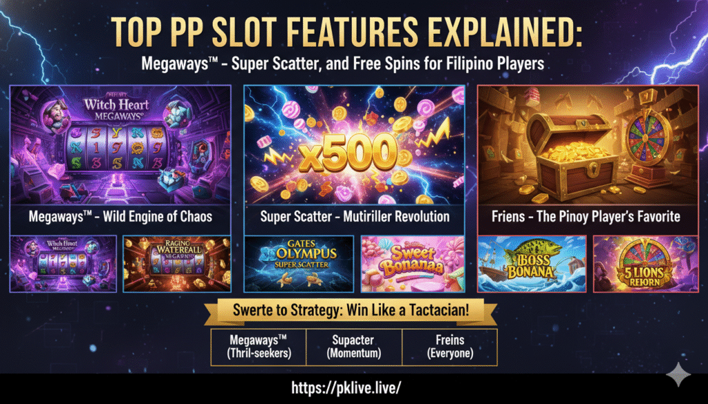 Here’s your crash course on the three most iconic PP SLOT systems: Megaways™, Super Scatter, and Free Spins — simplified, explained, and tuned for the Pinoy way of playing.